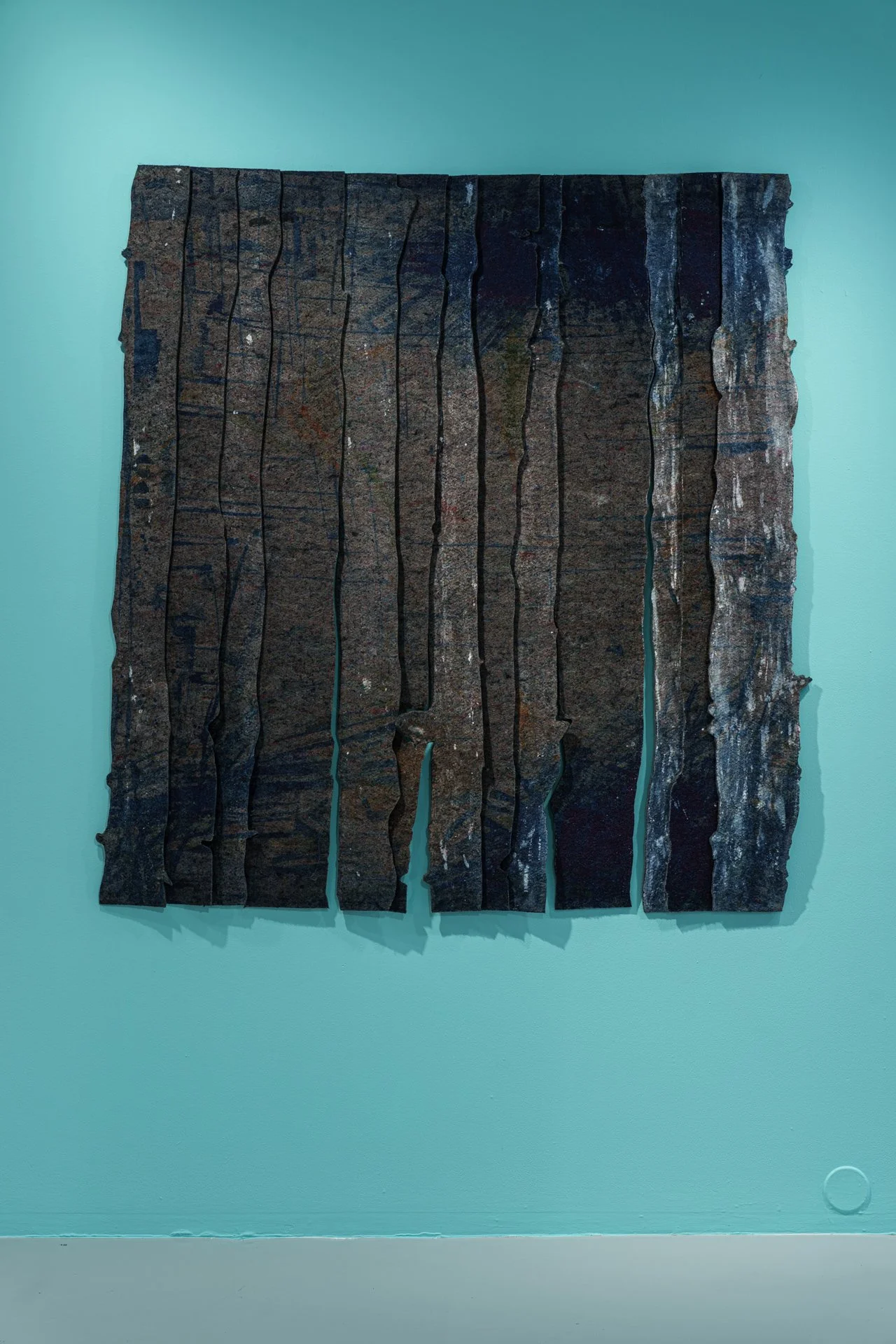 «I utstillinga Landskap viser Marianne Moe arbeid i ullfilt. Arbeida er formale arbeid, bygd opp av handfarga strimler av ullfilt. Skiftingar mellom ljos og mørke, og fargane som oppstår i denne brytinga, er inspirasjon for fleire av arbeida. Mange av arbeida er i store format, og nokre av arbeida er også laga av restar og rører borti tema som ressursutnytting og verdi.»