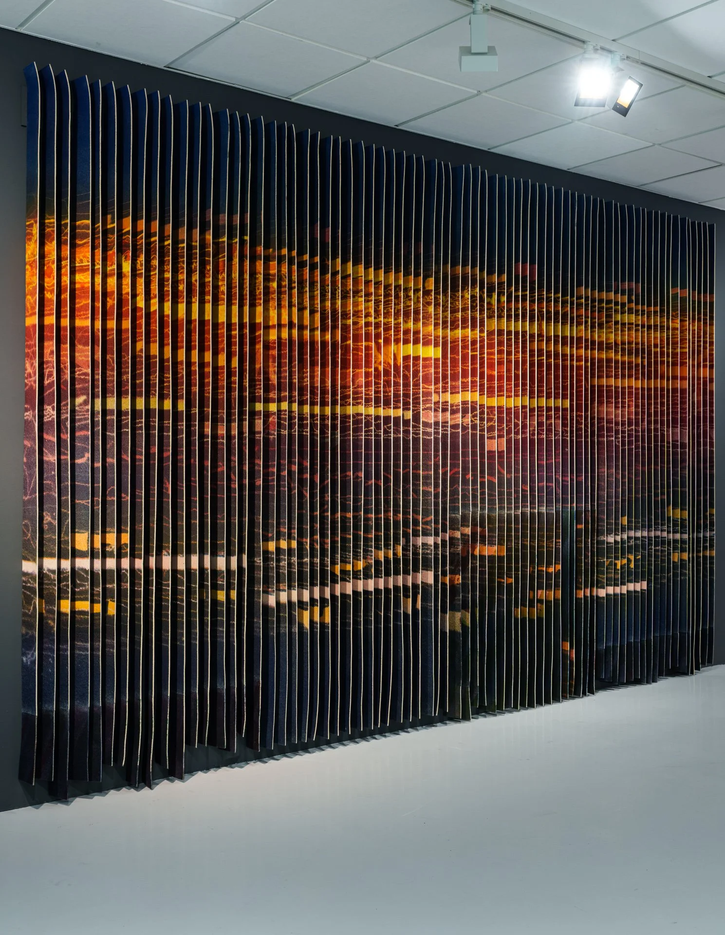 Storeggaraset Jan 29 Written By Marianne Moe Storeggaraset, 2025. Farget ullfilt, montert på mdf list. 240x425x10 cm. Foto Kjell Ove Storvik View fullsize View fullsize View fullsize View fullsize Marianne Moe